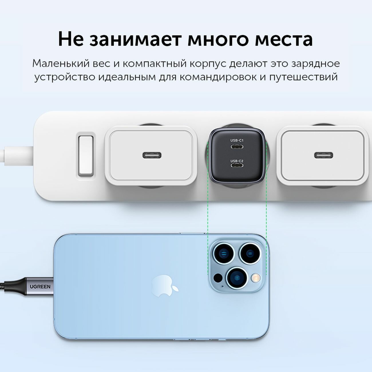 Сетевое зарядное устройство Ugreen CD 294 USB-C+USB-C PD GaN Fast Charger 45W, цвет серый (90573) 3 799 ₽