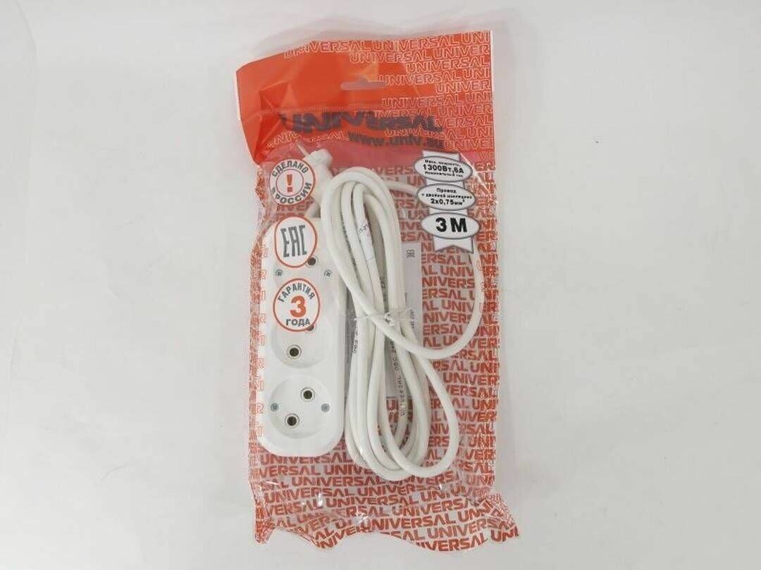 Удлинитель UNIVersal У6-639М (639М-02), 3 розетки, 2 м, б/з, 6А / 1300 Вт