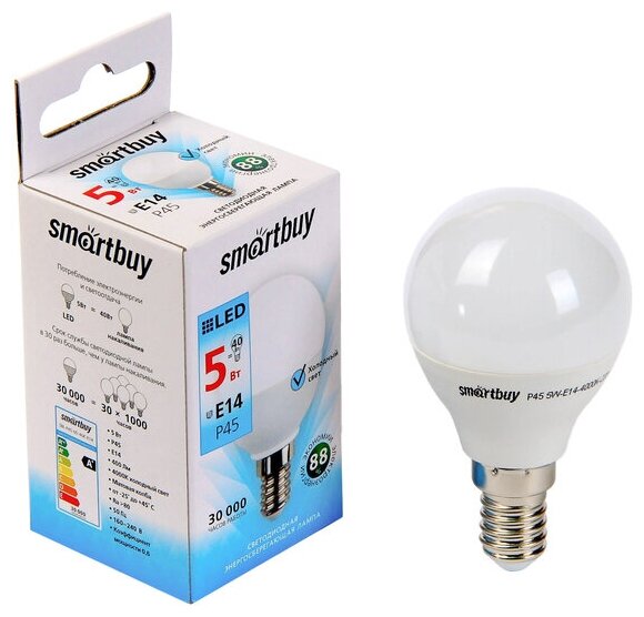 Отзывы на Лампа cветодиодная Smartbuy, Е14, P45, 5 Вт, 4000 К, холодный свет