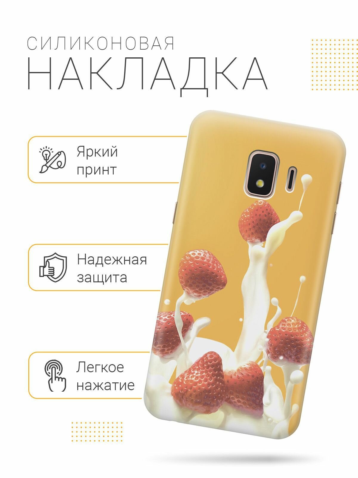Силиконовый чехол на Samsung Galaxy J2 Core / Самсунг Джей 2 Кор с принтом "Клубника и сливки" информация: