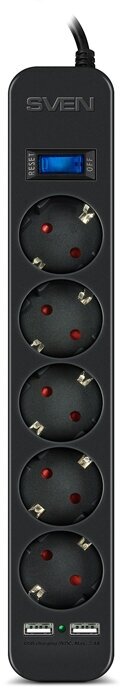 Отзывы на Фильтр SVEN SF-05LU 1,8 м (5 евро розеток,2*USB(2,4А)) черный, цветная коробка/ Surge protector SVEN SF-05LU 1,8 м (5 евро розеток,2*USB(2,4А)) черный, цветная коробка