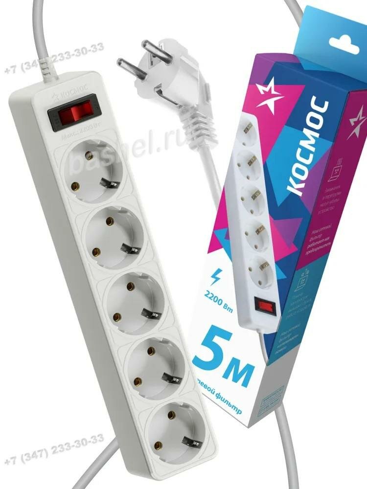 Отзывы на Сетевой фильтр космос 5м 5 гнезд, пвс 3x0,75мм2 с выключателем