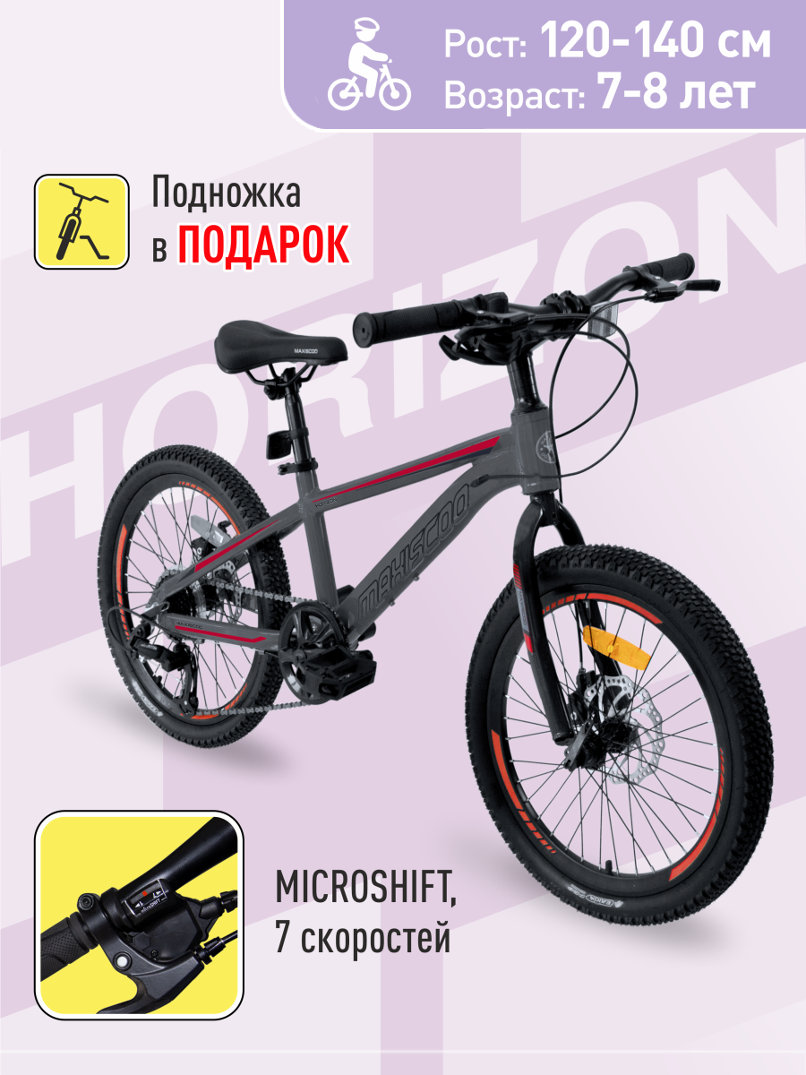 Отзывы на Велосипед двухколесный детский Maxiscoo "Horizon" 2022 7 скоростей 20", Серый Матовый
