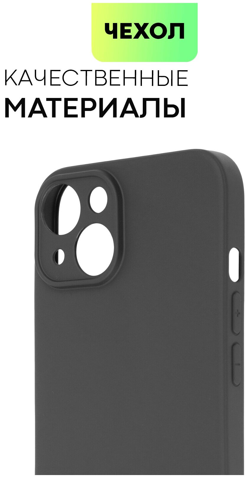 10 цен на BROSCORP/Силиконовый чехол-накладка для Apple iPhone 14 (Эпл Айфон 14) тонкая, с матовым покрытием и бортиком (защитой) вокруг модуля камер, черная
