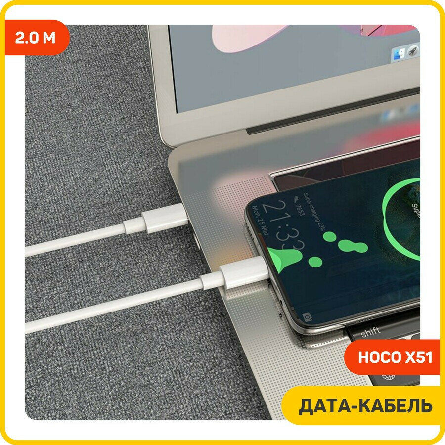 Кабель Type-C HOCO X51 High-power для Type-C, 100W, 5.0 A, длина 2.0 м, белый