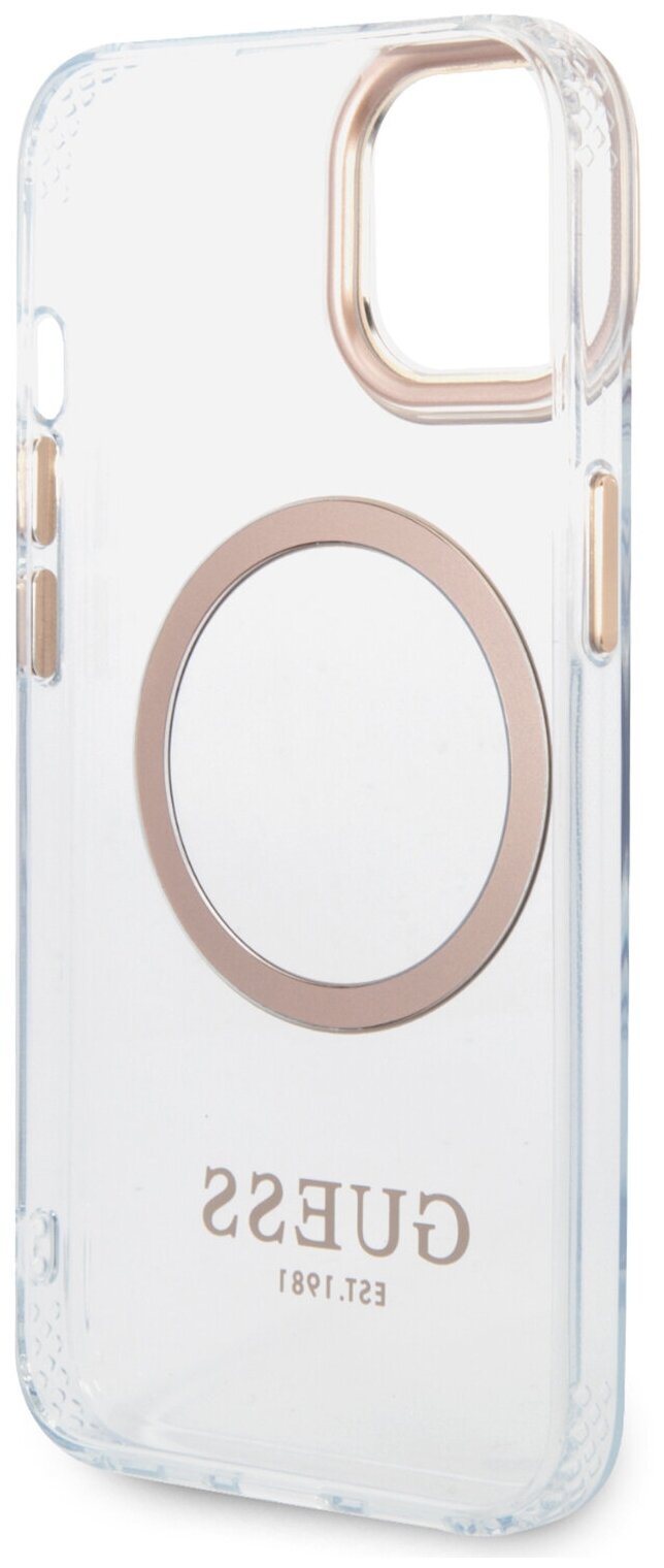 Guess Чехол Guess Metal outline Hard для iPhone 14, прозрачный/золотой (MagSafe)