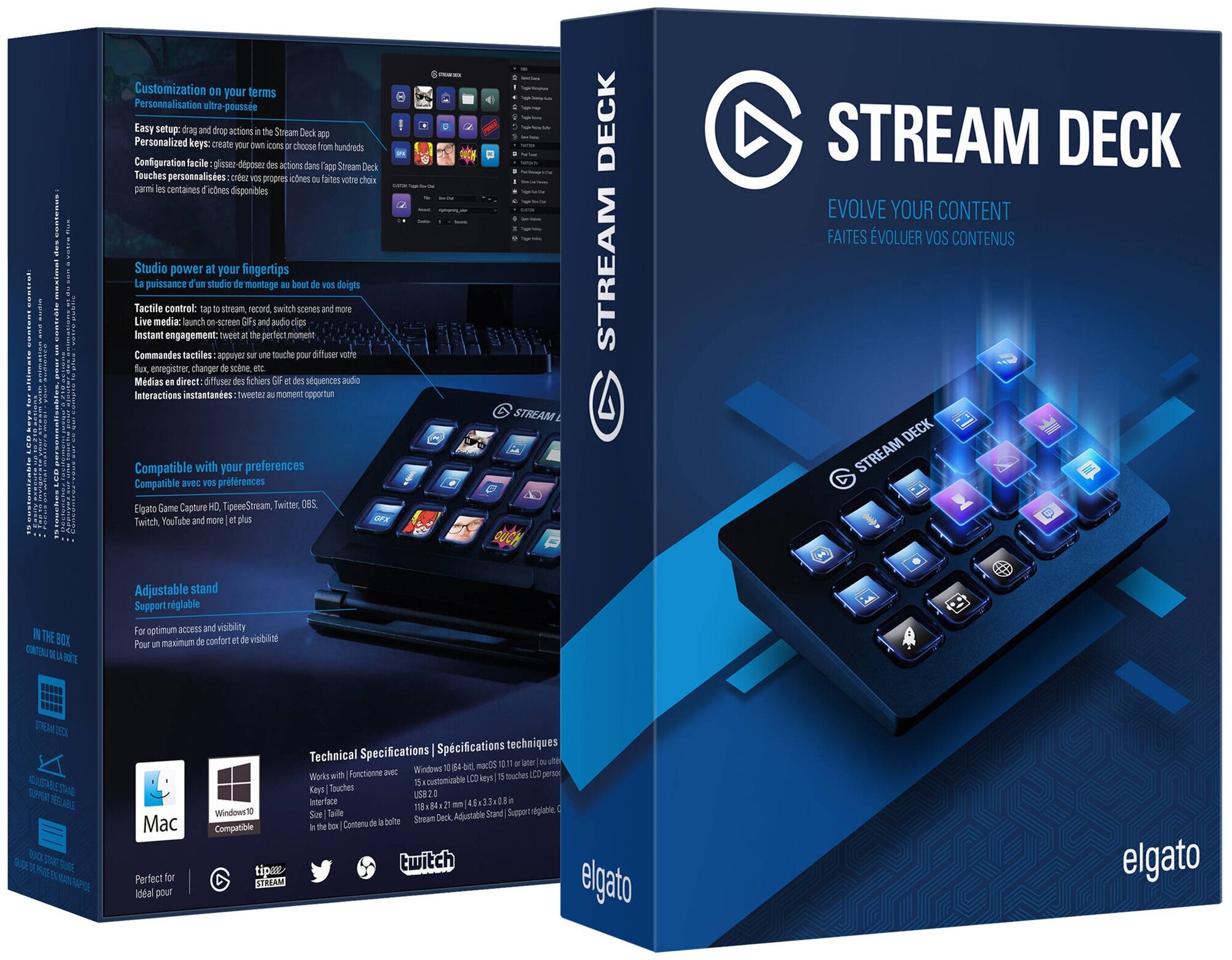 | Дополнительная информация | создание кнопок с помощью Key Creator; поддержка Elgato Game Capture, OBS, Twitch, Twitter, Tipeee Stream, XSplit, YouTube, Mixer; более 200 доступных макросов |