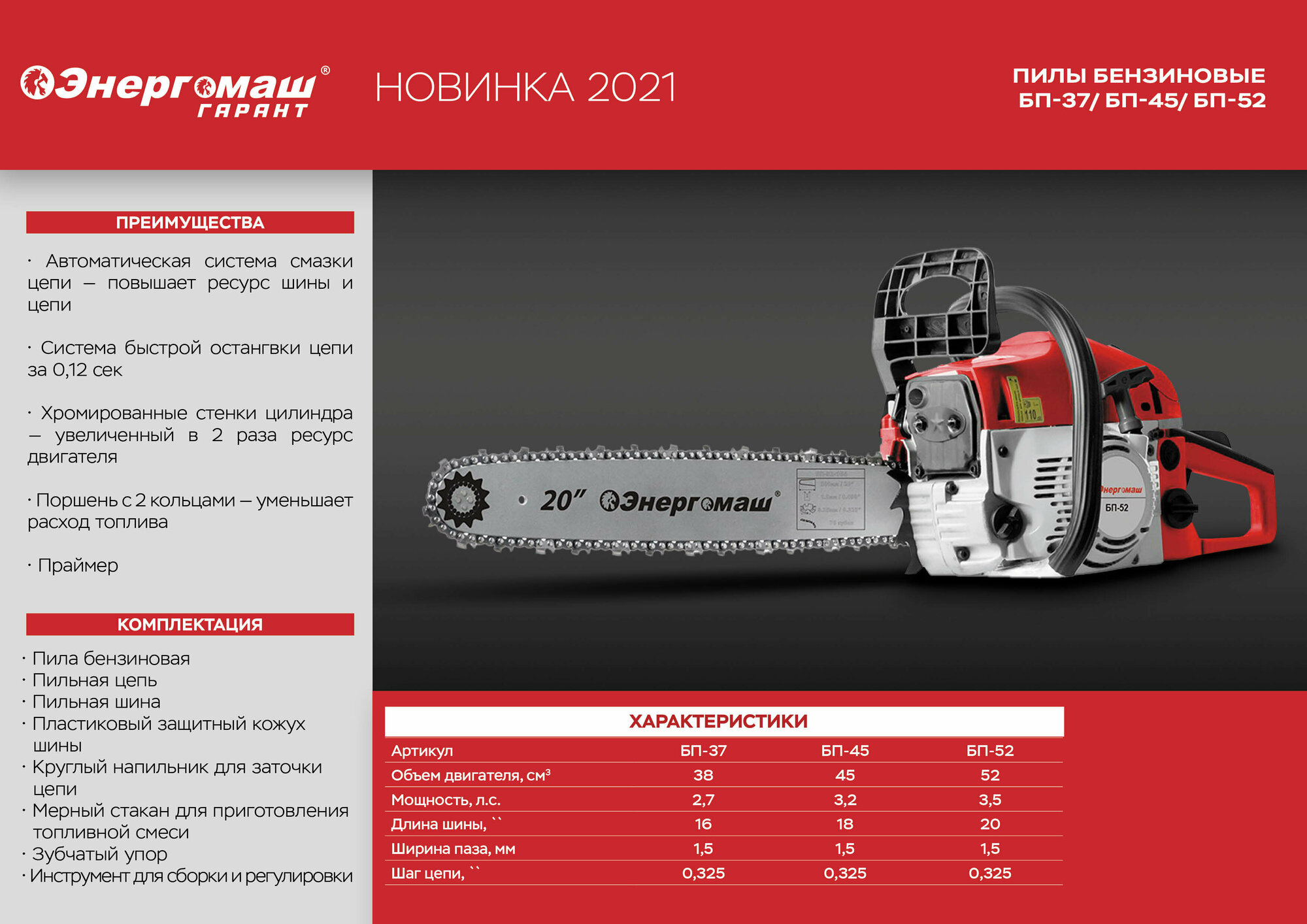 Бензопила Энергомаш БП-37, длинна шины 40см