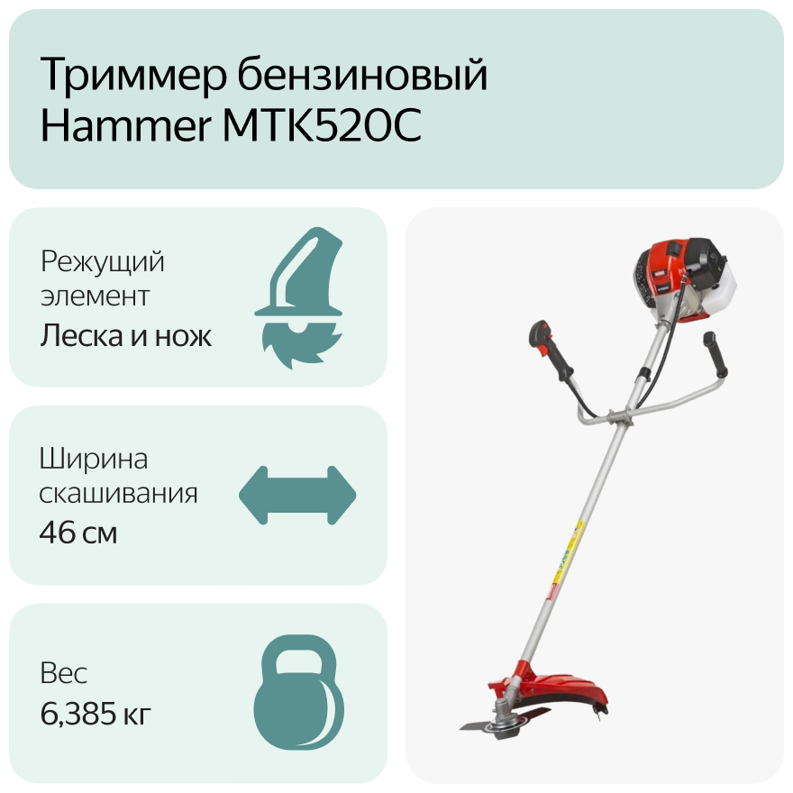 Отзывы на Мотокоса Hammer MTK520C 2,1лс/1,54кВт 52,2см3 нож/леска 255/460мм ранцевый ремень