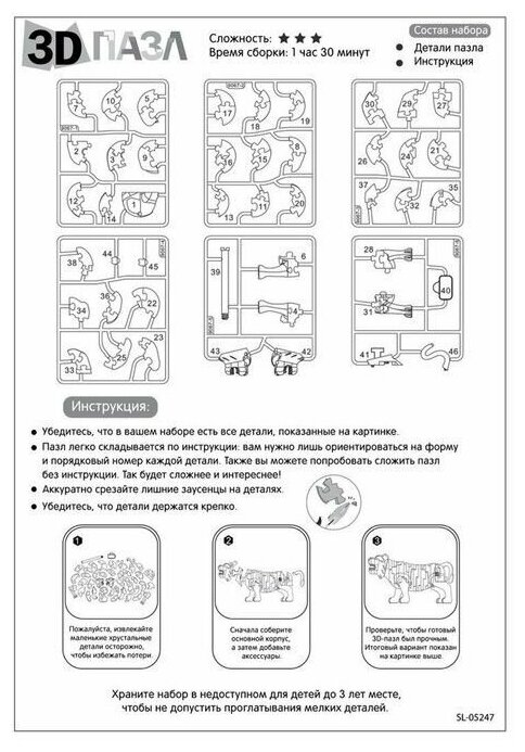ZABIAKA Пазл 3D «Волшебный тигр», 46 деталей информация: