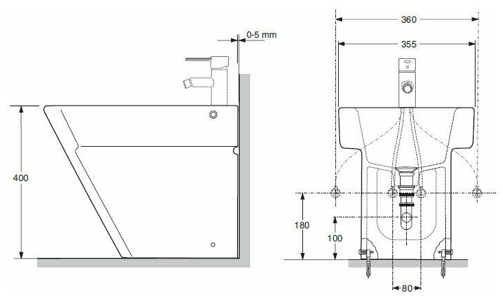 Биде напольное Roca Hall 357624000 с горизонтальным выпуском белый информация:
