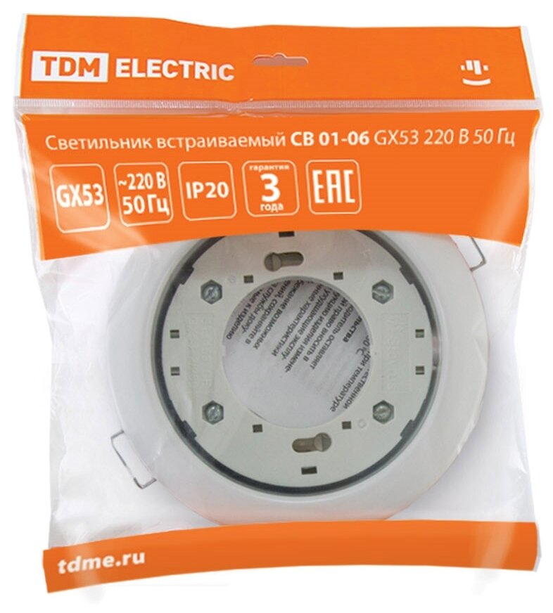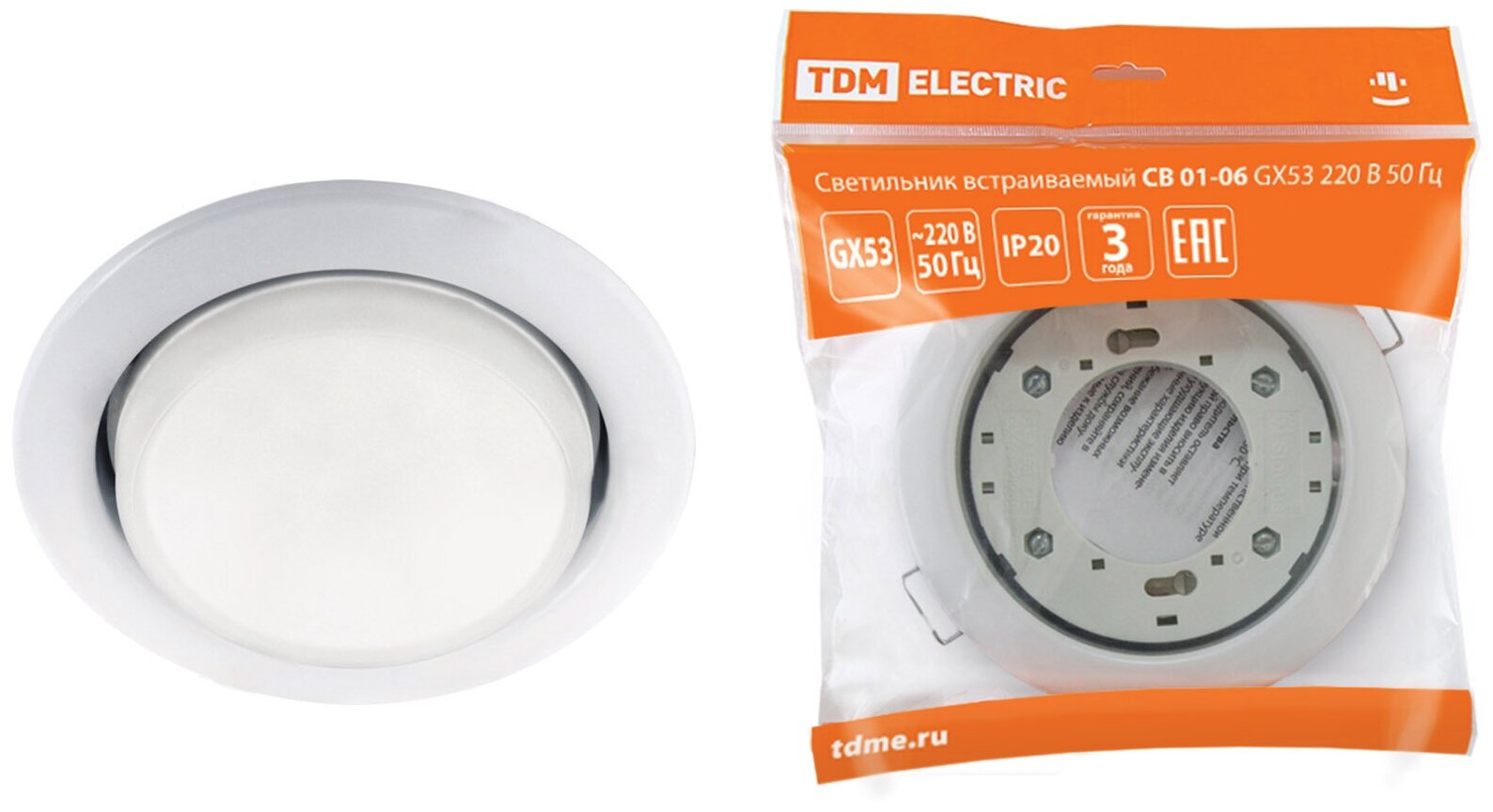 Светильник встраиваемый TDM СВ 01-06 GX53, 220В, 50Гц, белый информация: