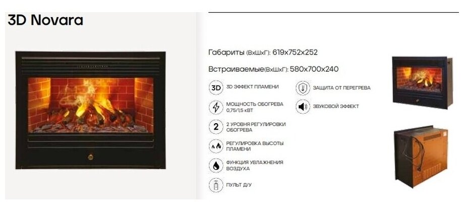 Электрокамин Mirra 26 WT с очагом Novara 26 3D 126 984 ₽