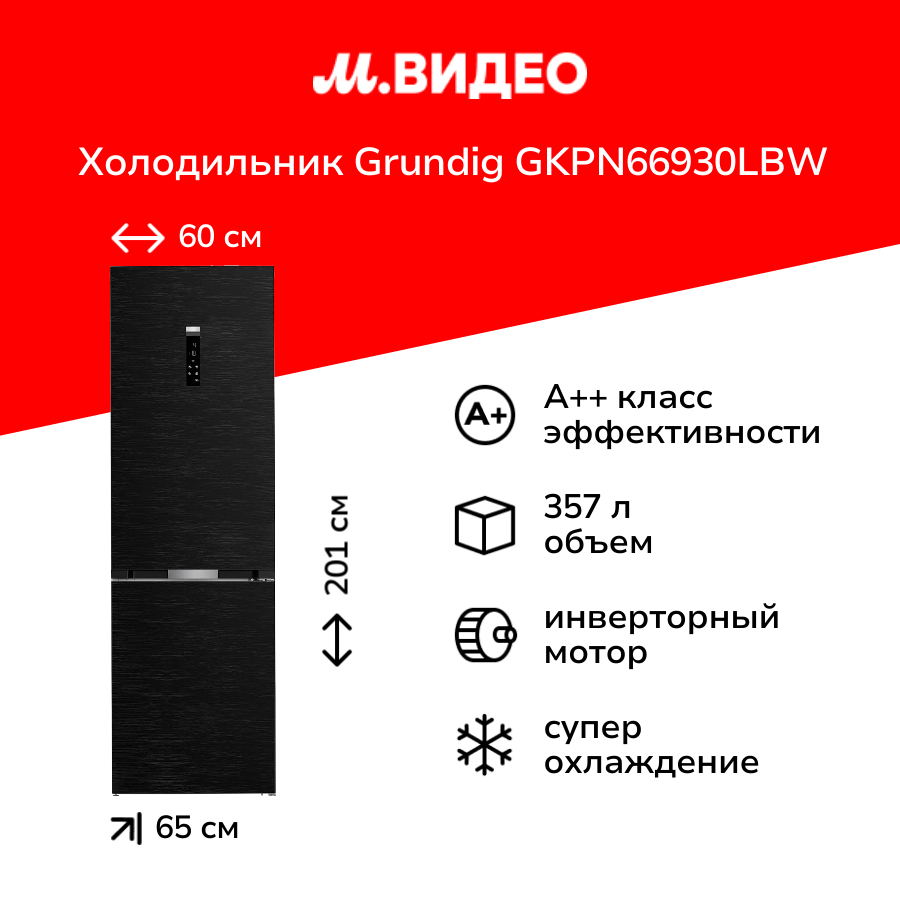 Холодильник двухкамерный GRUNDIG GKPN66930LBW Total No Frost, инверторный черный сапфир/серый