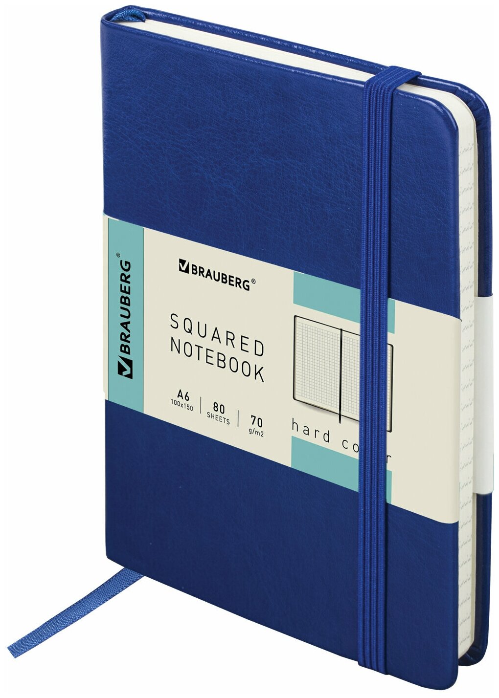 Блокнот Brauberg малый формат, (100*150 мм), А6 "Metropolis Special", под кожу, резинка, 80 листов, синий (111580) информация: