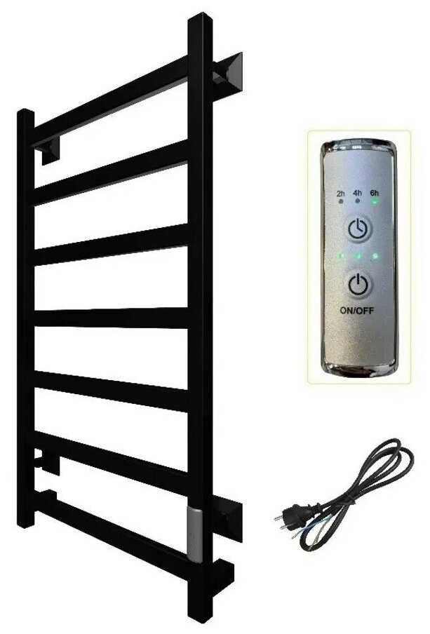 Полотенцесушитель электрический Тругор 500мм 800мм чёрный квадратный форма лесенка универсальное подключение: слева/справа/скрытое подключени/шнур с вилкой.