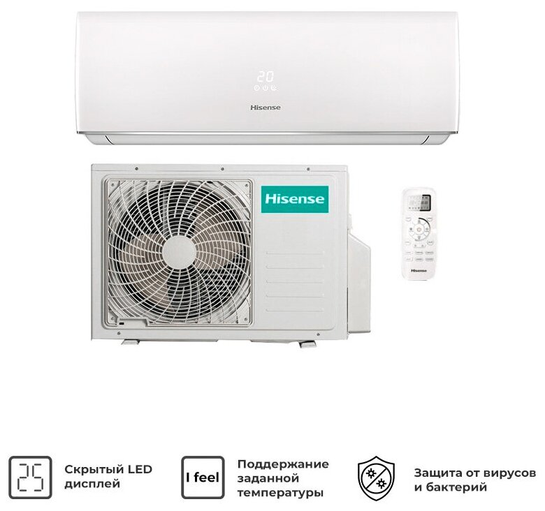 Кондиционер Hisense AS-13UW4RVETG00, пульт ДУ, таймер, дисплей, площадь до 54м², белый