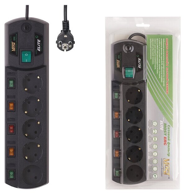 Сетевой фильтр MOST ЕRG Elite 5 гнезд 3 м черный информация: