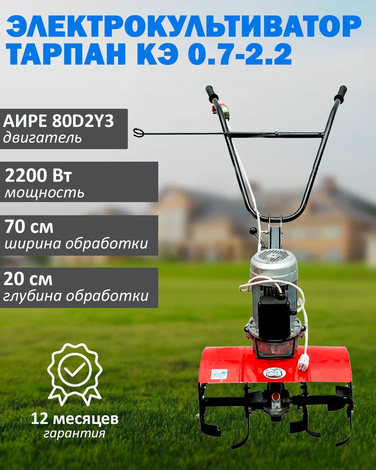 Мотокультиватор электрический Тарпан КЭ 0,7-2,2 с двигателем аире 80D2УЗ, 2,2 кВт информация: