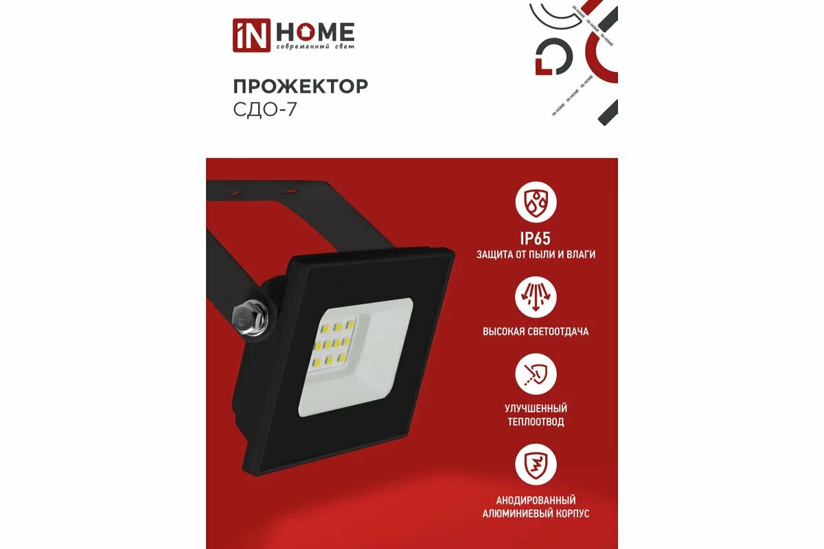 Прожектор светодиод СДО-7 20Вт 6500К 1600Лм IP65 черный IN HOME информация: