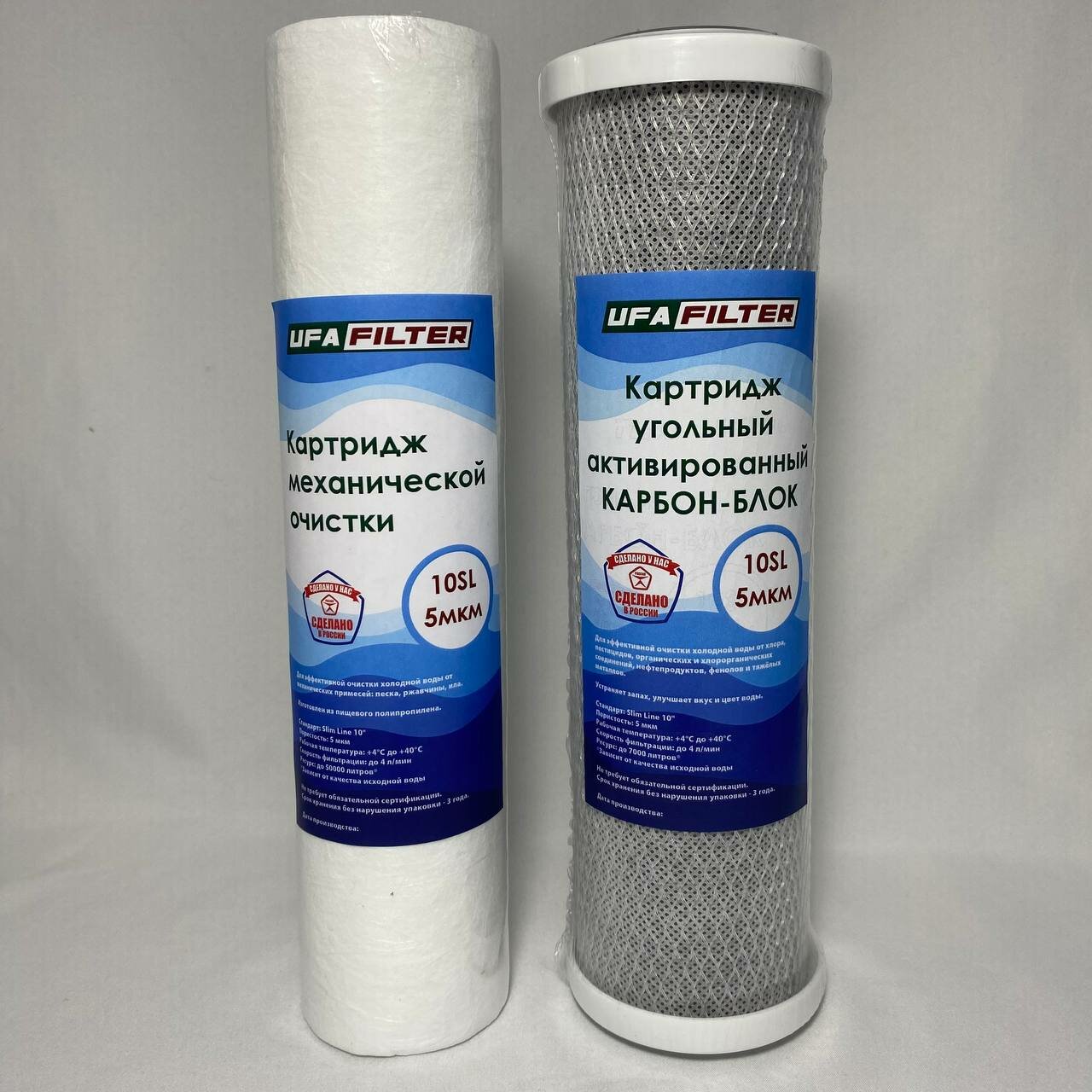 Универсальный набор картриджей 2 шт. для фильтров воды UFAFILTER 10SL (механическая очистка + прессованный уголь) информация: