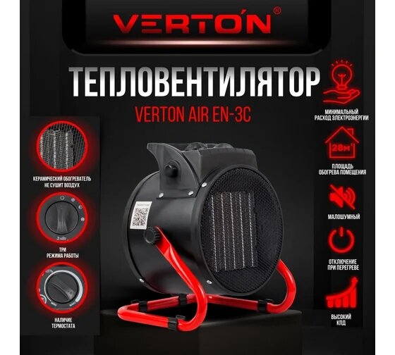 VERTON Электрический тепловентилятор Air EH-3C 220В,25/1500/3000Вт, 330 куб.м. 01.5985.6762 информация: