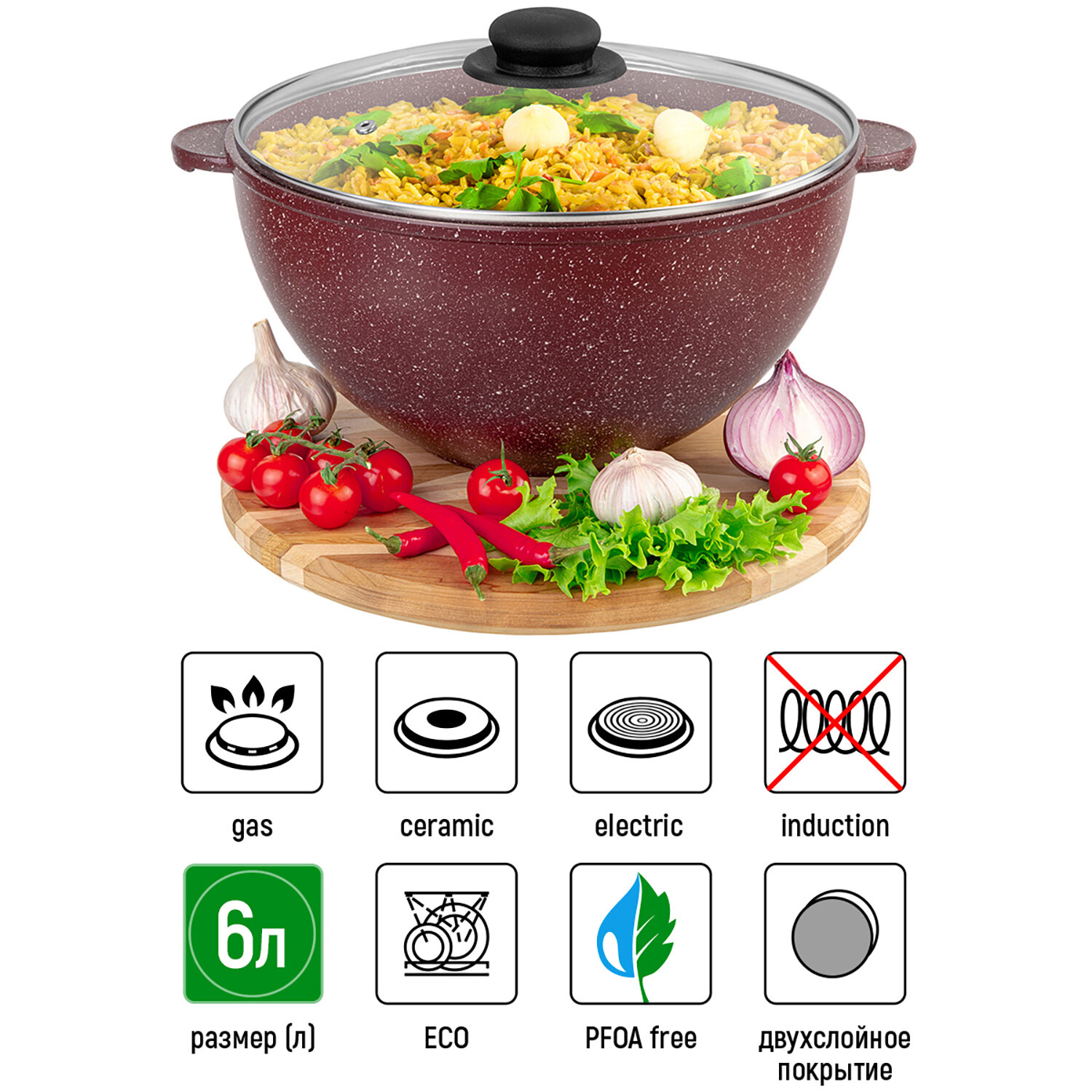 Казан 6 л Elan Gallery гармония вкуса "Рубин" с крышкой ф28, 34,5*29,5*19,5 см информация: