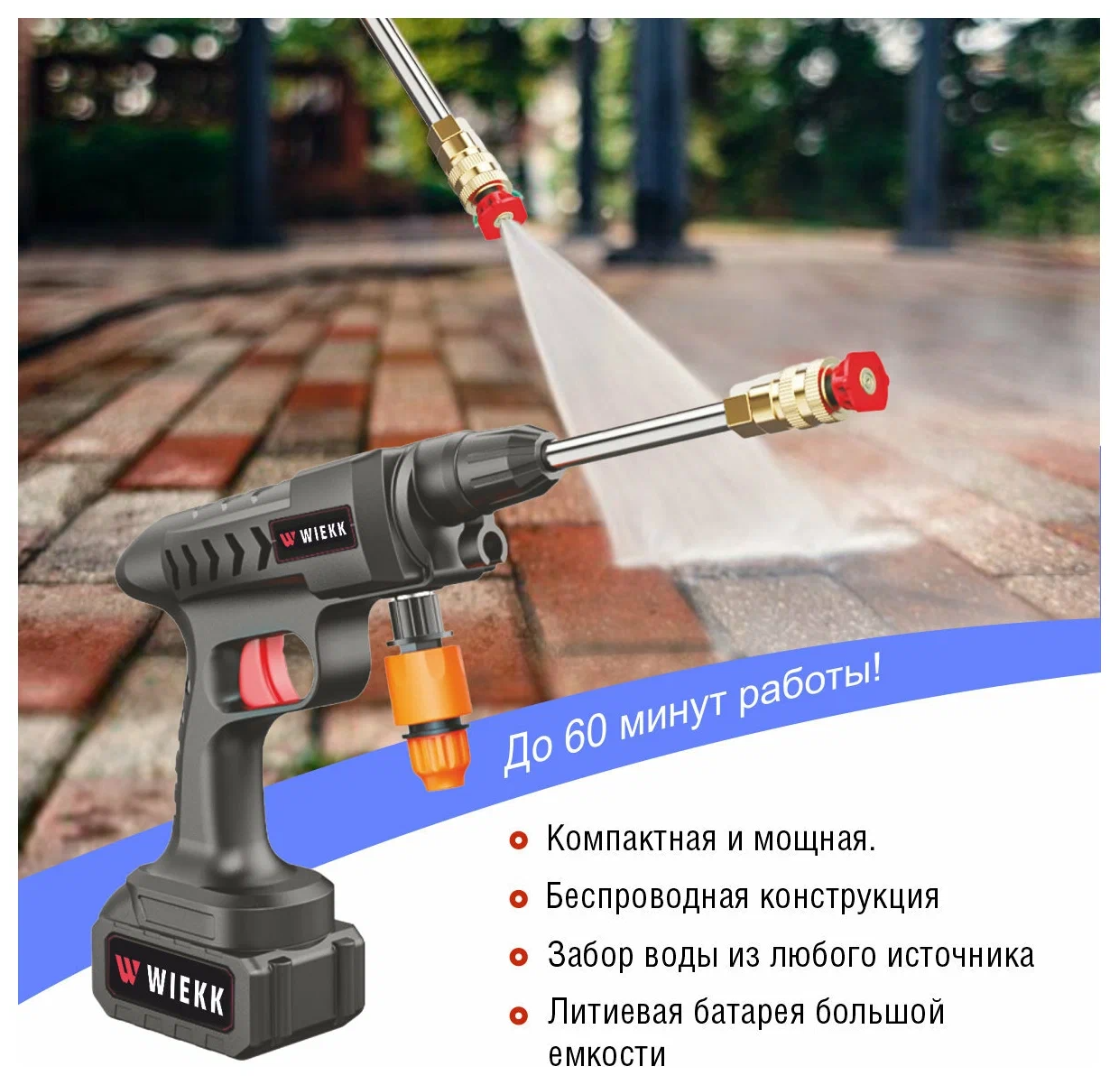 10 цен на Аккумуляторная мойка высокого давления WIEKK 120930, 80 бар, 240 л/ч, с АКБ и ЗУ