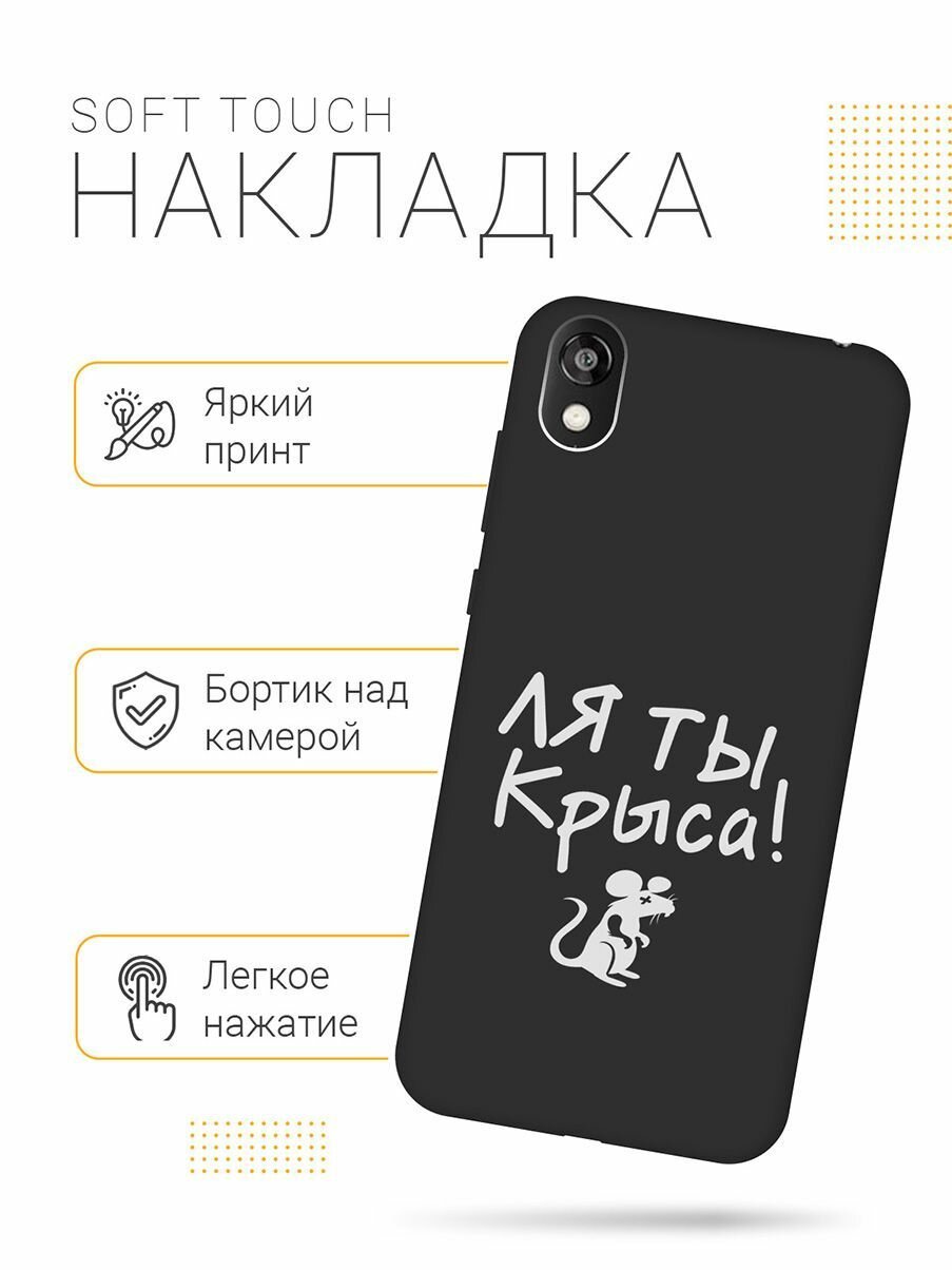 Отзывы на Матовый Soft Touch силиконовый чехол на Honor 8S / Huawei Y5 (2019) / Хуавей У5 2019 / Хонор 8с с 3D принтом "Rat W" черный
