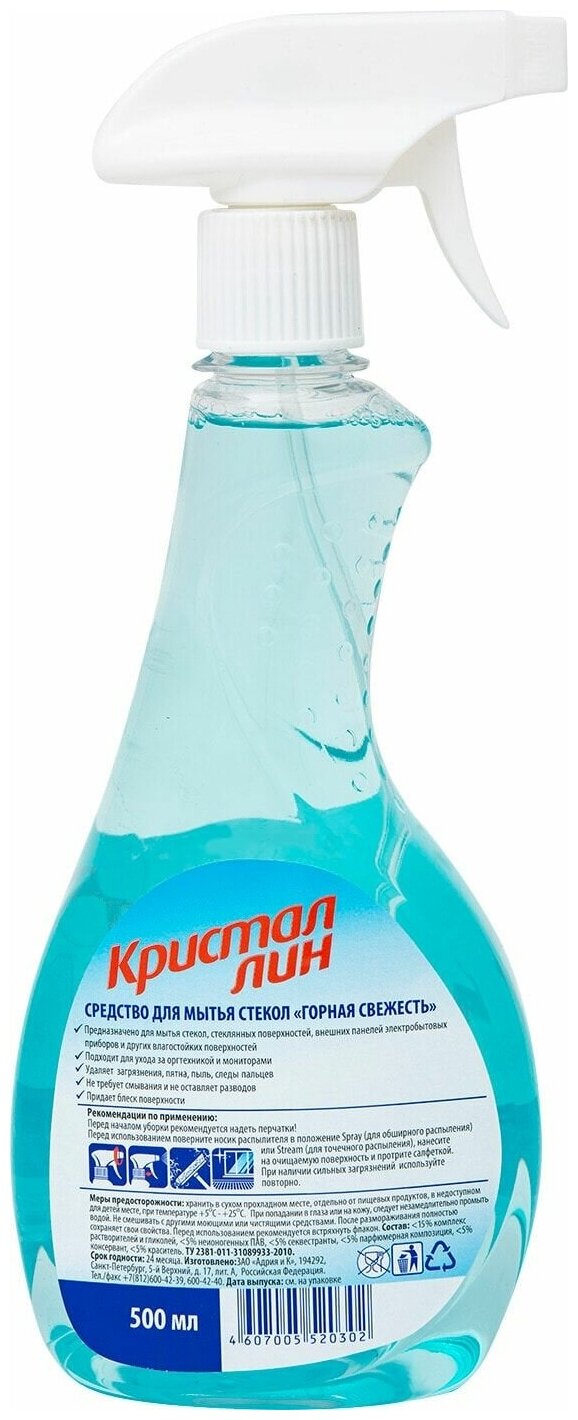 Кристаллин спрей для стекол и зеркал "Горная свежесть", 500 мл информация: