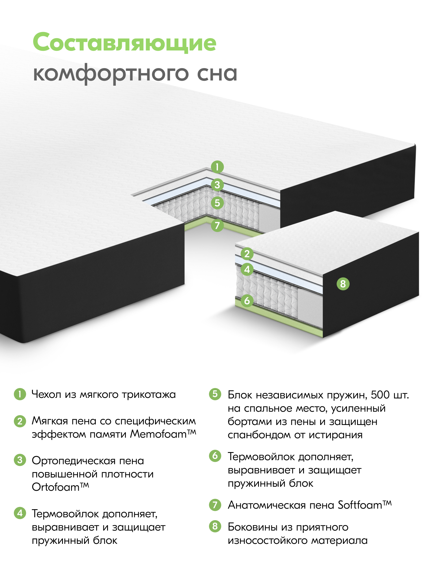 Ортопедический матрас 155х186 Sonlike Springo, высота 21 см, независимые пружины, анатомический, 2 стороны жесткости 25 524 ₽