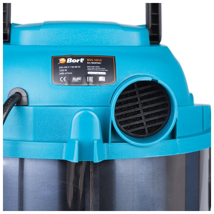 Bort BSS-1015 Пылесос строительный [98297041] { 1250 Вт, вместимость 15 л, 58 л/сек, 5 кг, набор аксессуаров 10 шт } 6 689 ₽