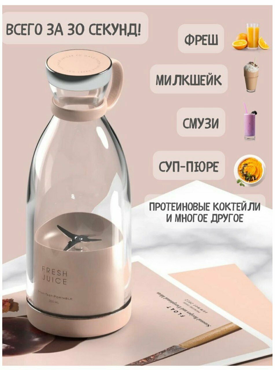 10 цен на Портативный блендер-бутылка для смузи NATURAL JUICEрозов /Беспроводной миксер на 350 мл с хромированной крышкой/Блендер-соковыжималка