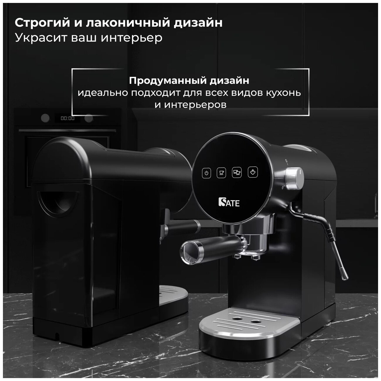 10 цен на Кофеварка рожковая SATE GT-100 с капучинатором, давление 20 бар, 1360 Вт ,черный