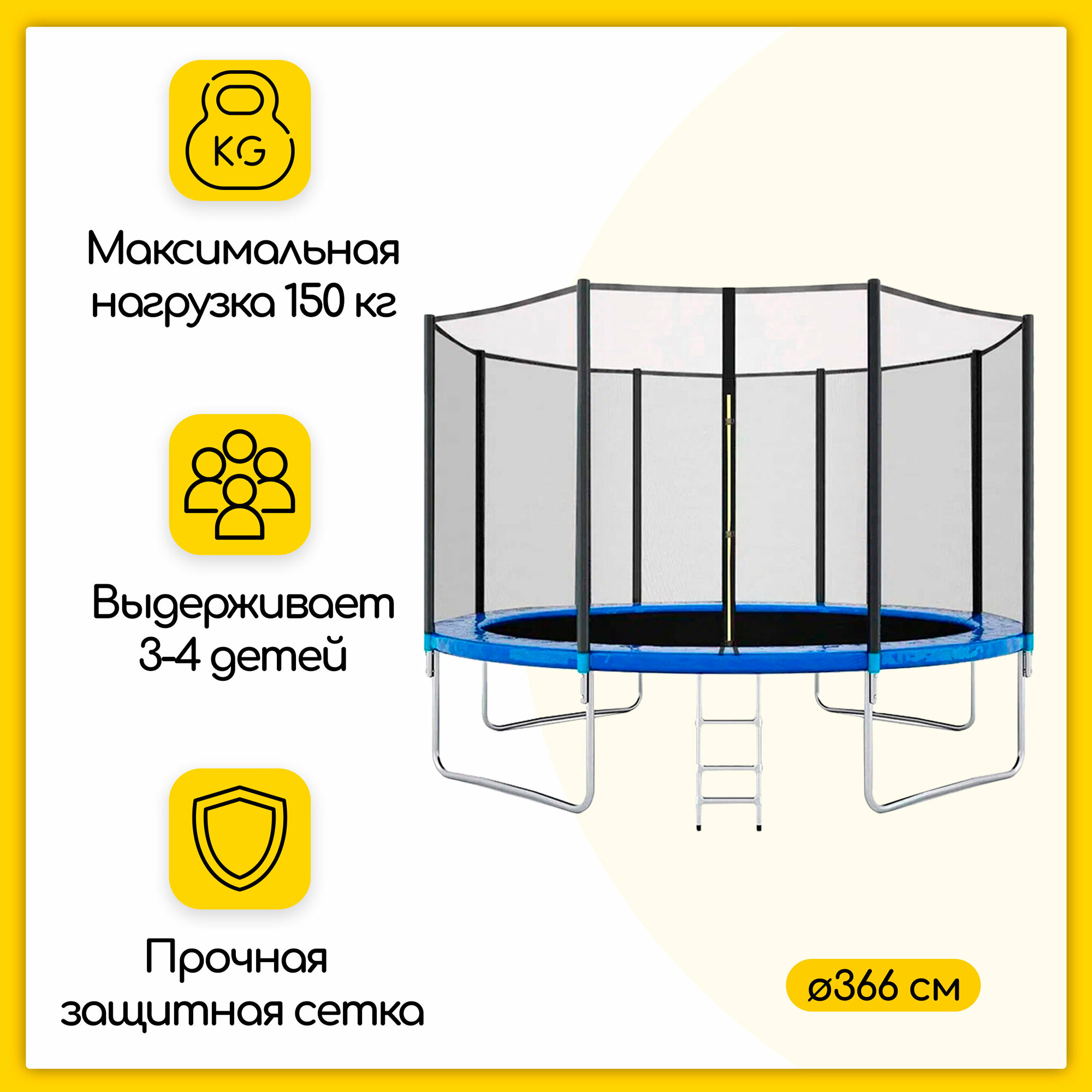 Батут каркасный 366 см (12 FT) с защитной сеткой и лестницей, уличный информация: