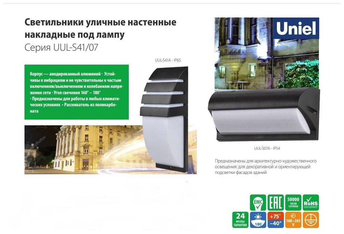 Отзывы на Уличный настенный светильник Uniel UUL-S41A 40W/E27 IP65 BLACK