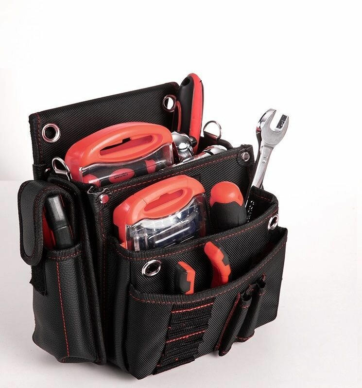 Отзывы на DELI Поясная сумка монтажника электрика для инструмента с ремнем DL5865 250x250x110мм (7 карманов, ткань оксфорд 1680d, кожаные боковые карманы)
