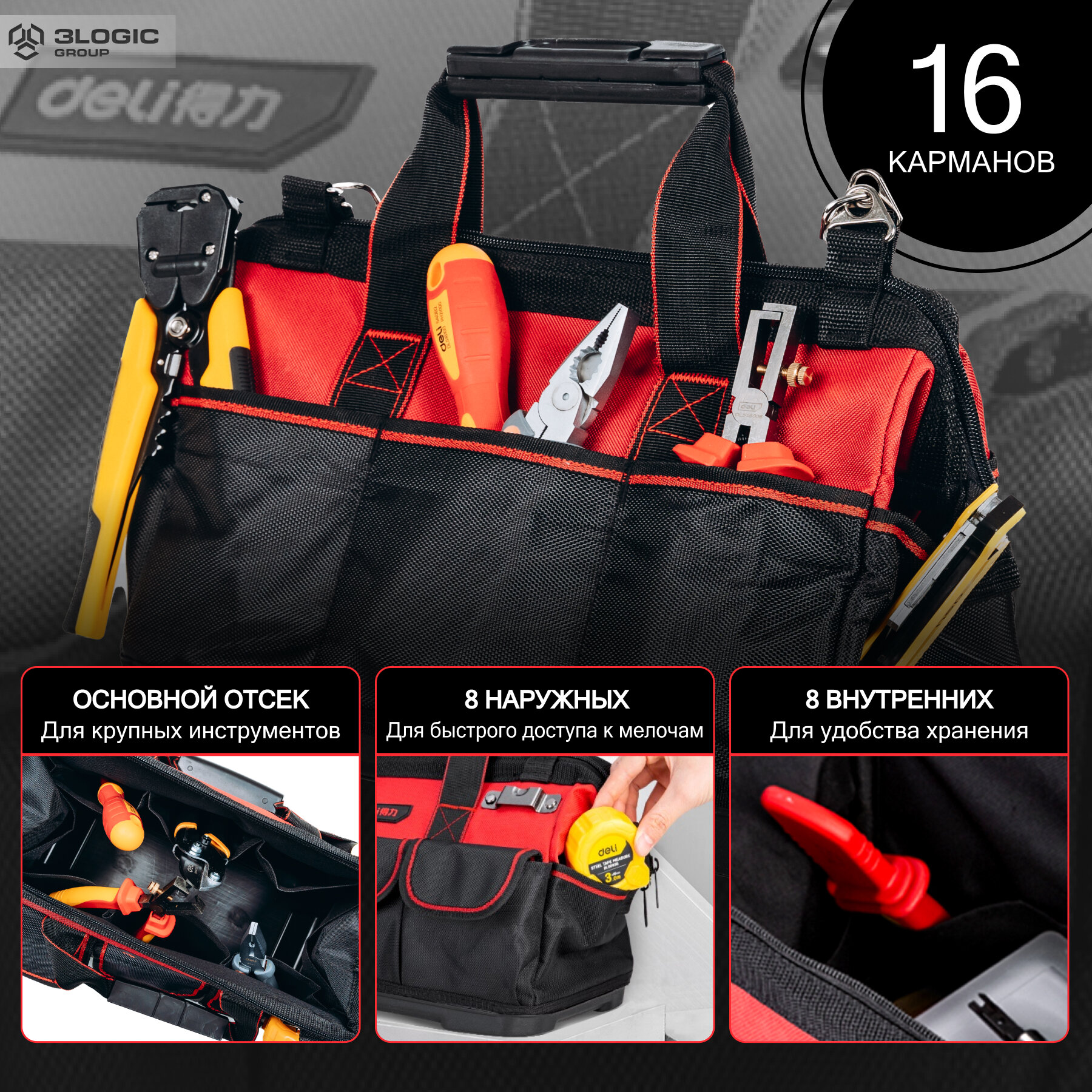 DELI Сумка для инструментов с жестким пластиковым дном DL430320 475x220x310мм (16 карманов, плечевой ремень, ткань оксфорд 1680d) 111108