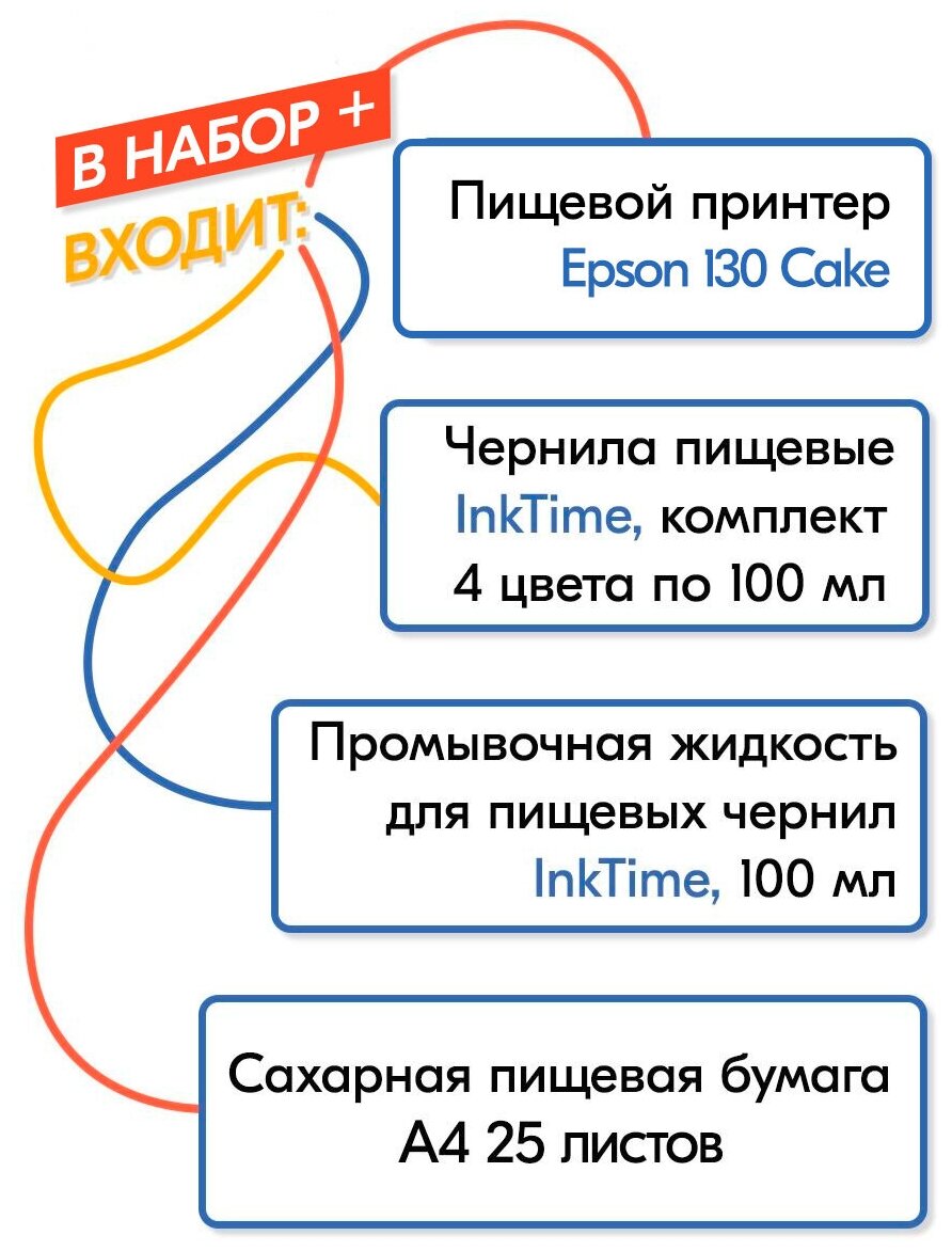 Пищевой принтер Epson START Cake с СНПЧ для кондитеров, стартовый набор №5 (принтер, пищевые чернила 4х100мл, промывочная жидкость, сахарная бумага) информация: