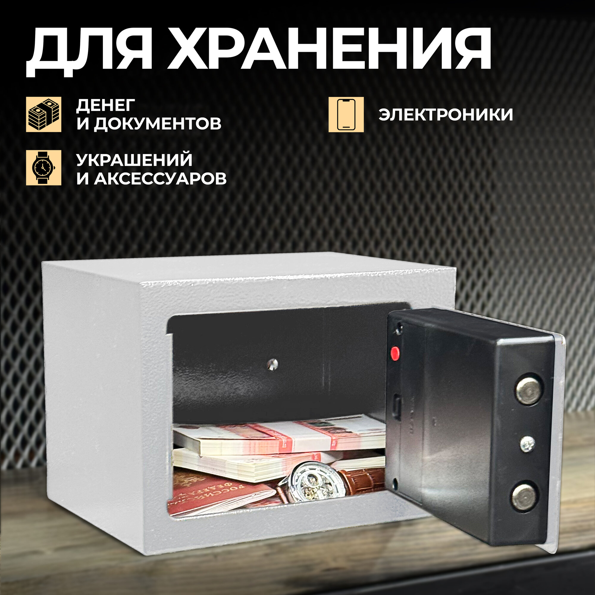 Сейф маленький (мини), мебельный, для хранения денег и документов, с электронным кодовым замком, черный