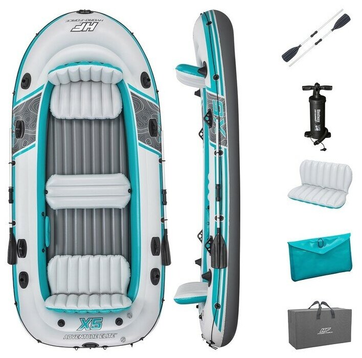Надувная лодка BestWay, Adventure Elite X5, 364x166 см, весла, насос до 600 кг