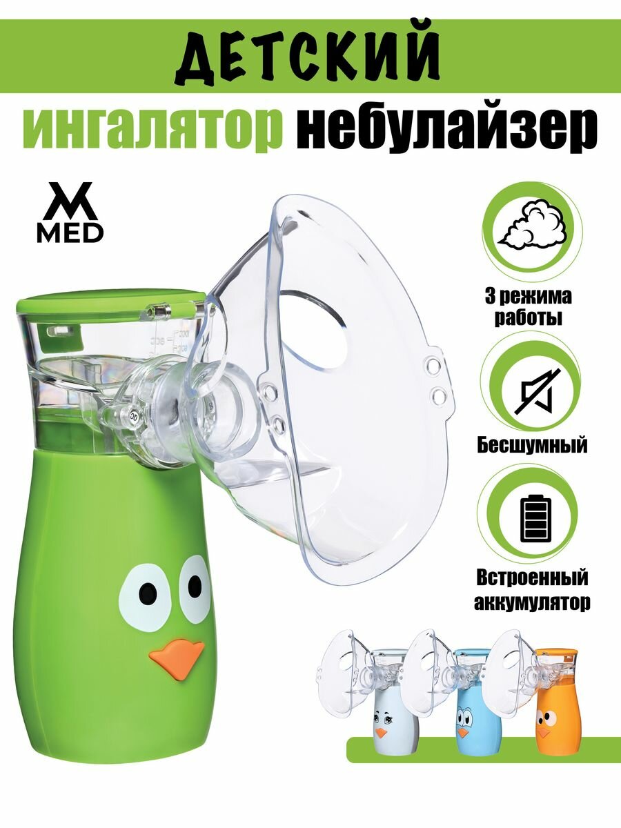 Ингалятор небулайзер детский mesh силиконовая маска бесшумный мощный аккумуляторный зеленый информация: