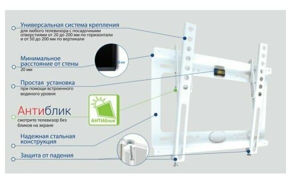 Отзывы на Кронштейн Kromax IDEAL-6, для ТВ, наклонный, 15-47", 20 мм от стены, белый