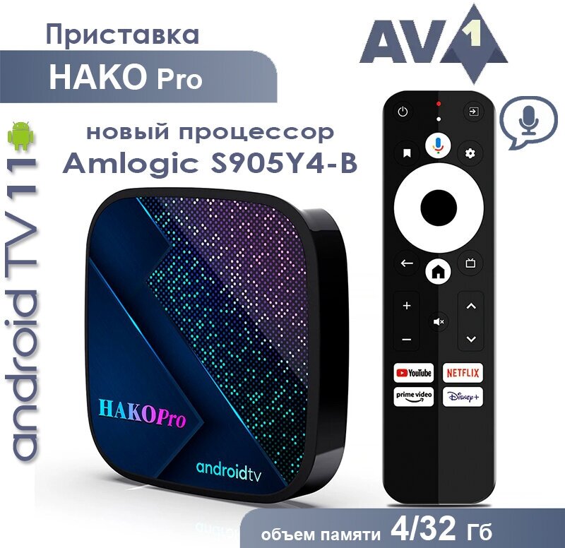 HAKOMiNi S905Y4 Смарт-ТВ-бокс Андроид11 2.4G 5G Двойной Wi-Fi BT5.0 Сертификация Google телевизионная приставка Медиаплеер 4ГБ + 32ГБ информация: