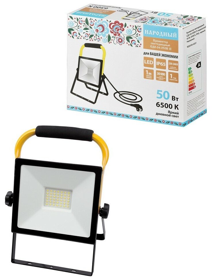 Прожектор светодиодный Народный СДО-04-050Н-П, переносной, 50 Вт, 6500 К, IP65, черный