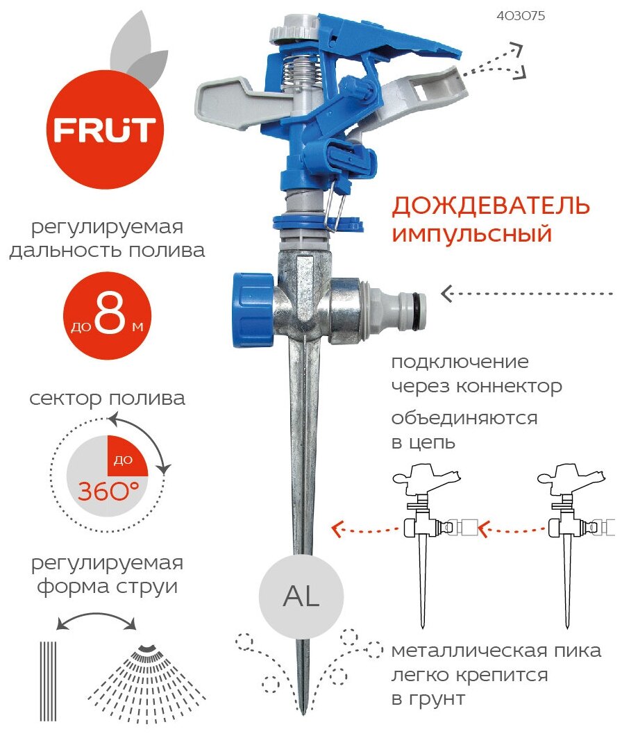 FRUT Импульсный разбрызгиватель на металлической пике 403075-1 информация: