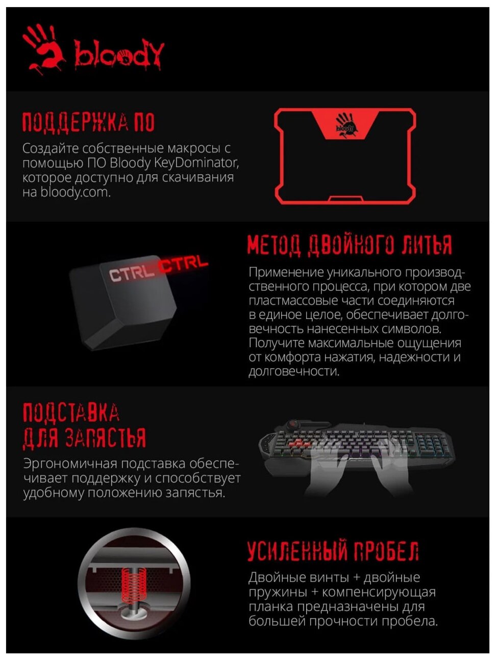 Клавиатура проводная A4Tech Bloody B310N информация: