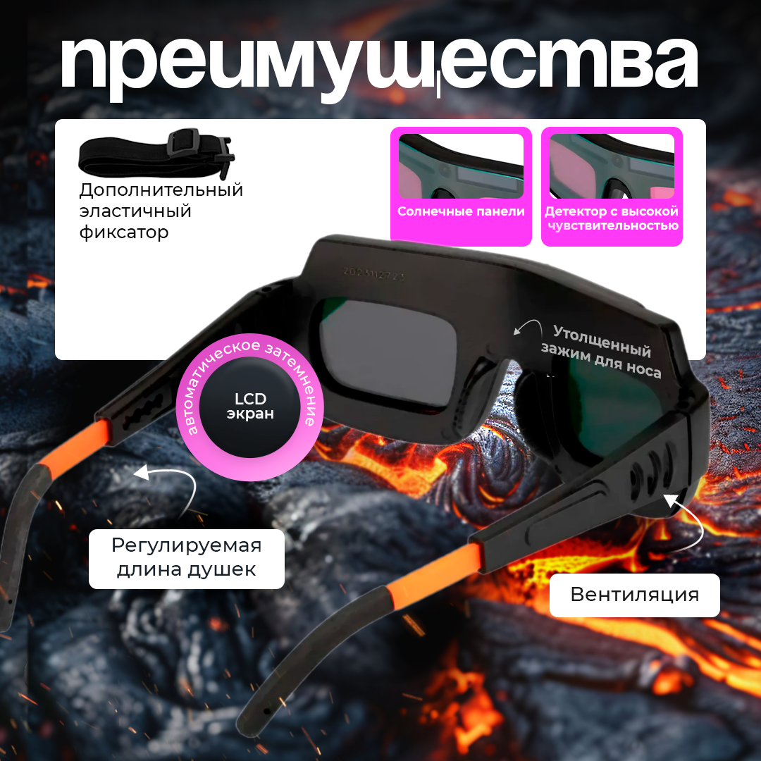 Сварочные очки хамелеон DIN 3 - DIN 11, задержка 0.1с, с поясом на шею и резиновой прокладкой для головы