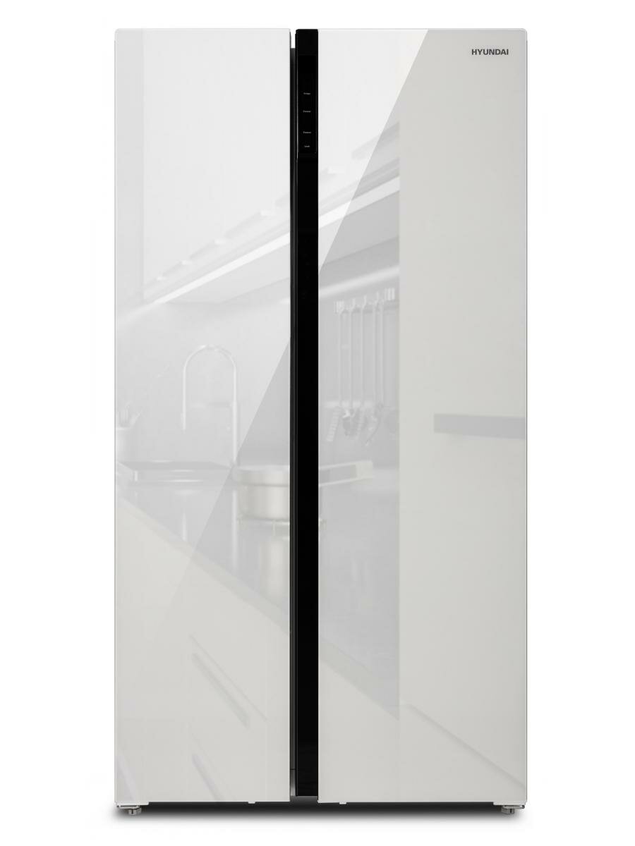 Холодильник Hyundai CS6503FV Side by side, Full No Frost, с морозильной камерой, многодверный, белое стекло