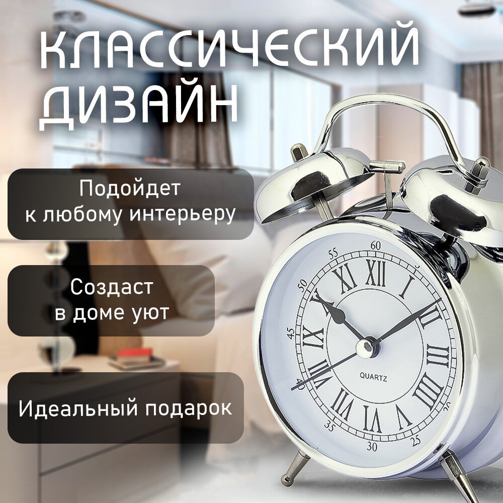 10 цен на Часы будильник настольные классические D-10 см цвет хром Эврика детские, взрослые, подарочные мужские, женщине, ребенку, на стол, в спальню